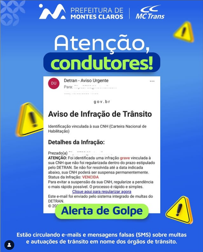 A MCTrans alerta sobre mensagens falsas de multas de trânsito